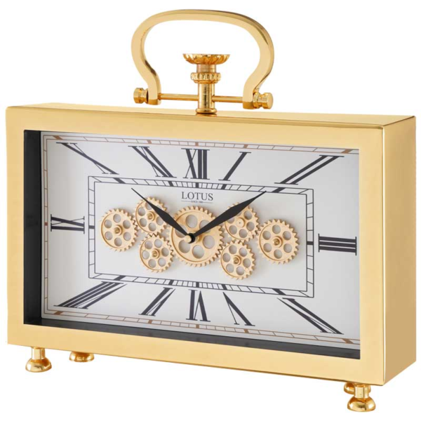 ساعت رومیزی فلزی چرخ دنده ای لوتوس مدل MONTEREY کد TC-803 رنگ GOLD/WH